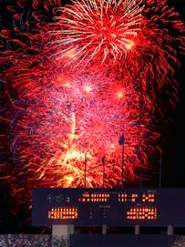 阪神タイガースと岡山日日新聞新社は、7月6日(火)に倉敷マスカットスタジアムで開催するプロ野球公式戦「阪神タイガース対東京ヤクルトスワローズ戦」で、阪神タイガース球団創立75周年と倉敷マスカットスタジアム開場15周年を記念し、「花火ナイター」を行います。5回裏終了時(予定)に約450発の花火が倉敷の夜空を彩ります。岡山で唯一のプロ野球公式戦で、プロの迫力あるプレーとともに、夏の風物詩・花火をぜひともお楽しみ下さい。
