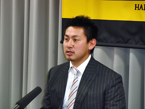 29日(月)、桜井広大選手が球団事務所での契約更改終了後に会見を行いました。