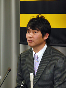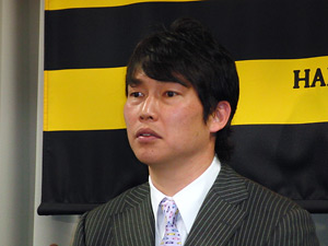7日(火)、新井貴浩選手が球団事務所での契約更改終了後に会見を行いました。