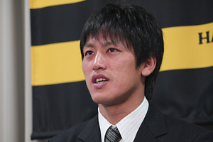 6日(火)、小嶋達也投手が球団事務所での契約更改終了後に会見を行いました。