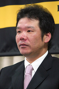 14日(水)、藤井彰人選手が球団事務所での契約更改終了後に会見を行いました。