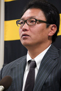14日(水)、福原忍投手が球団事務所での契約更改終了後に会見を行いました。