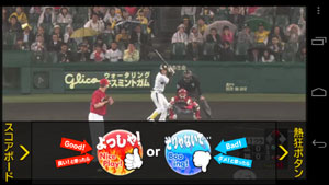 『虎テレ』の人気コンテンツである「熱狂メーター!」では、シーンごとにファンの皆さんが「よっしゃ!」または「そりゃないで!」のボタンをクリックすることにより自分の感情を表現することができます。