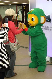 ![]() 二神投手&岩本投手による若虎選手のお出迎え | ![]() キー太もお出迎え |
