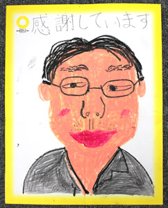 絵と一緒に「感謝しています」ってなかなか言えないものですよ。立派です。似顔絵もとっても上手です。