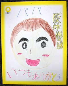 茶髪の笑顔に思わず微笑んでしまいました。「いつもありがとう」とともに「阪神優勝」というのも嬉しいですね。