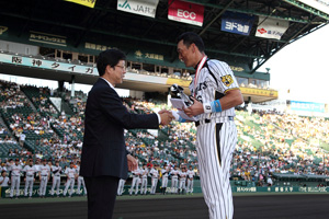 金本知憲選手には、セ・リーグ、球団およびスポンサーより賞品と記念品が授与されました。