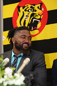 ドリス選手:阪神タイガースに来られて誇りに思います。たくさんのファンがいることは聞いていたので、期待に応えてファンと共にファイナル目指して頑張りたいと思います。