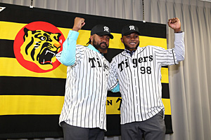28日(木)、球団事務所(兵庫県西宮市)にて、先日入団が決まりましたマルコス・マテオ選手とラファエル・ドリス選手の入団会見を行いました。