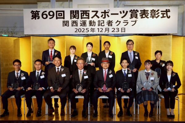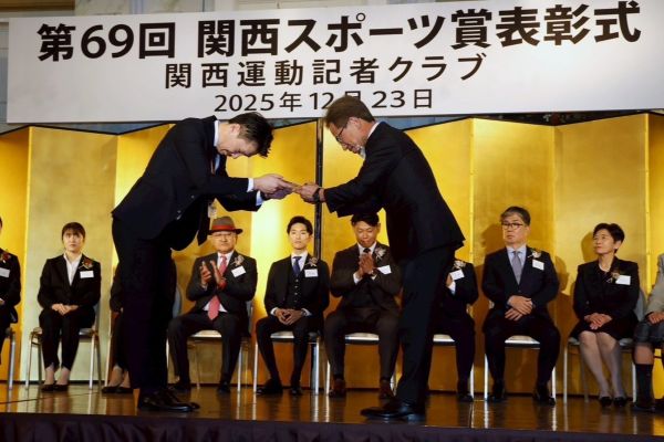 この度、関西運動記者クラブ選定「第69回 関西スポーツ賞」の団体賞を阪神タイガースが受賞し、23日(火)、大阪市内で行われた表彰式に粟井一夫球団社長が出席しました。また、今シーズン限りで引退した原口文仁氏は功労賞を受賞されました。