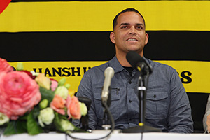 16日(月)、マリオ・サンティアゴ選手の入団が決定し、球団事務所にて入団会見を行いました。