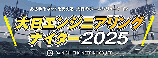 7月8日(火)~10(木)の日鉄鋼板 SGLスタジアム 尼崎での試合は、大日エンジニアリング株式会社協賛“大日エンジニアリングナイター”として開催いたします。