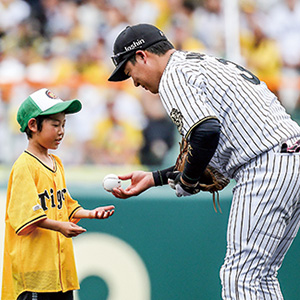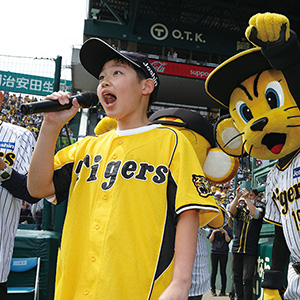 タイガースが勝ったら、ヒーローインタビューを受けた選手とハイタッチ!勝利の喜びを一緒に味わおう!!