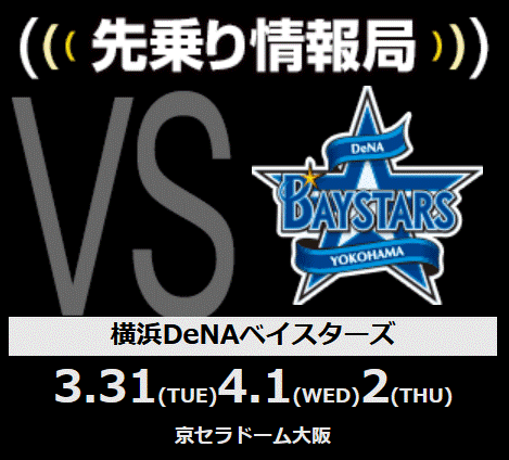 4/1・4/2・4/3 横浜DeNAベイスターズ戦 京セラドーム大阪