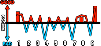 1試合を通じてどのシーンが盛り上がったかを視覚的に伝えます。