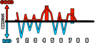 1試合を通じてどのシーンが盛り上がったかを視覚的に伝えます。