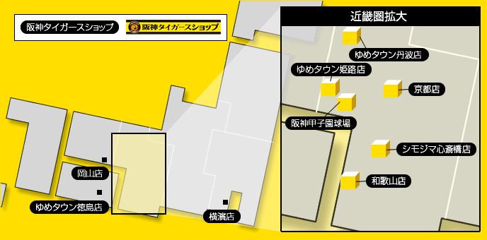 | 阪神タイガースショップ ゆめタウン姫路店 | 〒670-0055 兵庫県姫路市神子岡前三丁目12-17 3階 |