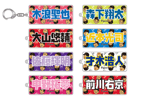 | 【奈良】フェイスタオル 1,650円 (木浪・森下・大山・近本・佐藤輝・ 才木・中野・前川) | 【奈良】シークレットアクリルキーホルダー(8種) 550円 (木浪・森下・大山・近本・佐藤輝・ 才木・中野・前川) |