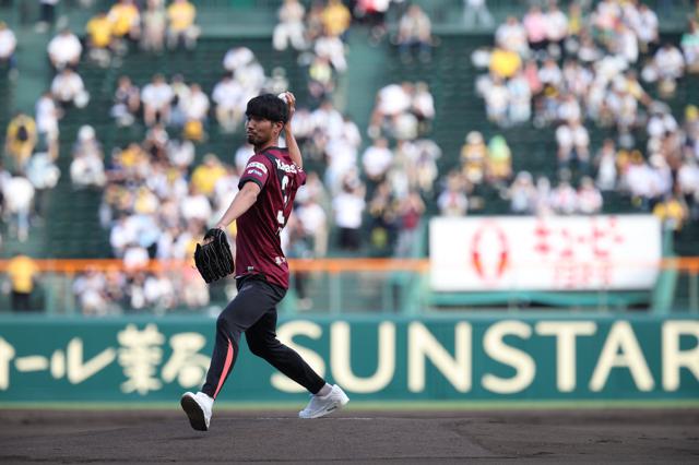 また6月18日(水)阪神甲子園球場にヴィッセル神戸「岩波拓也」選手とヴィッセル神戸クラブマスコットの「モーヴィ」が来場し、阪神甲子園球場外周にて阪神タイガースOBの狩野恵輔さんとのトークショー、そしてファーストピッチセレモニーを行いました。