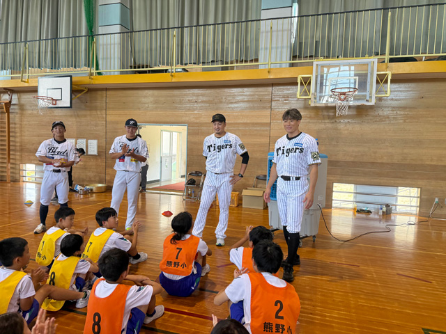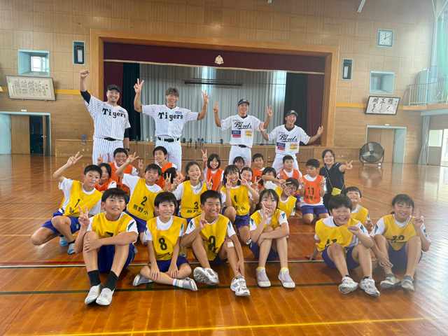 23日(水)、糸井嘉男スペシャルアンバサダー、秋山拓巳ベースボールアンバサダーが、地元・富山の独立リーグ球団・富山GRNサンダーバーズの選手と共にゲストティーチャーとして「富山市立熊野小学校」を訪問しました。