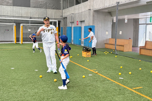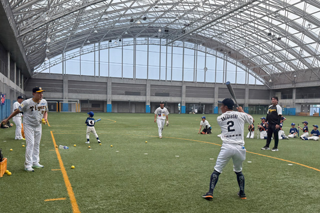 「打撃練習」エリアでは、「強い打球で遠くへ飛ばす」をテーマに、デモンストレーションを交えながら、丁寧な技術指導を行いました。