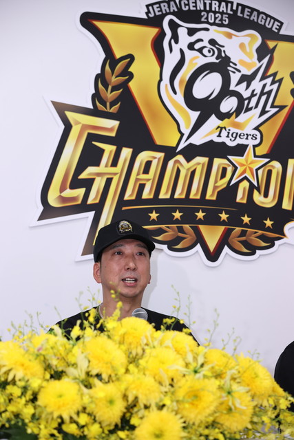 7日(日)、JERA セ・リーグ2025の優勝が決定し、藤川球児監督、中野拓夢選手、石井大智選手、佐藤輝明選手、才木浩人選手、近本光司選手が共同記者会見を行いました。