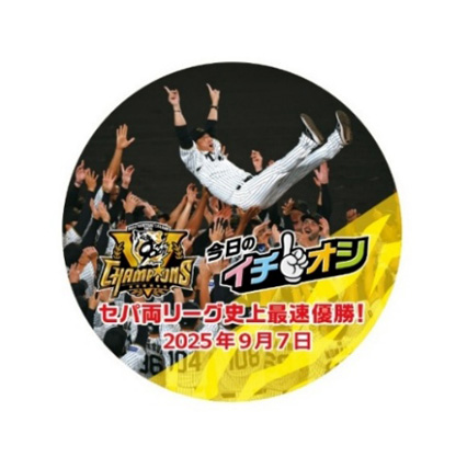 2025 JERA セ・リーグ優勝を決めた9月7日(日)のイチオシ缶バッジをチームショップアルプス・阪神甲子園球場レフト16号門横スタジアムショップ・阪神甲子園球場タイガース1塁ショップにて販売いたします。