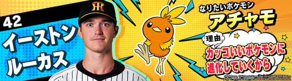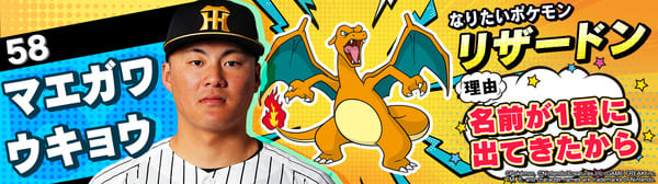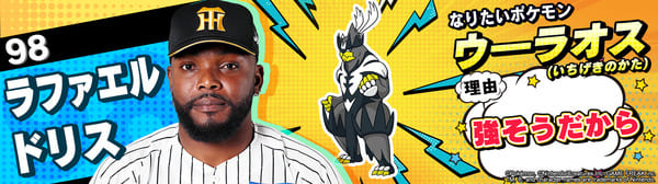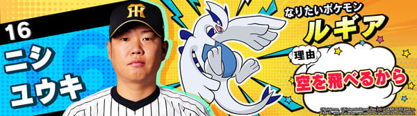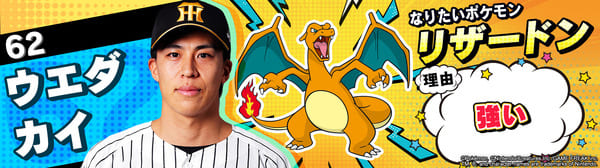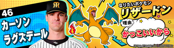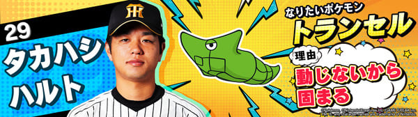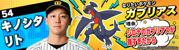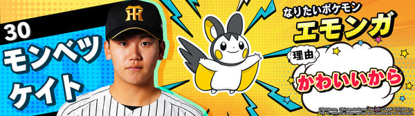 4月17日(金)~19日(日)、阪神甲子園球場での対中日ドラゴンズ戦において「ポケモンベースボールフェスタ2026 ~30年の想いをボールに込めて~」を開催。イベントに合わせて、タイガース全選手になりたいポケモンを聞いてみました!是非、推し選手のなりたいポケモンを探してみてください!!なお、イベント開催期間中は球場ビジョンでも紹介いたします。