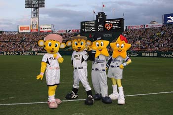今年も横浜ベイスターズのマスコットキャラクター『ホッシーナ&ホッシーゾ』が甲子園球場に登場し、トラッキー・ラッキーと一緒に応援を盛り上げます!皆様お楽しみに!!