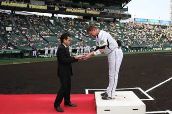 7月9日(金)対横浜戦の試合前に、球団選定6月度月間MVPの表彰式をおこないました。受賞したブラゼル選手には球団およびスポンサー各社、公式ファンクラブ会員より賞品と記念品が授与されました。大活躍中のブラゼル選手。七夕の願いは 『To Have a Great Season Will Win Japan Series』 その願いが叶うよう、益々の活躍を期待します。