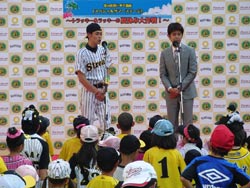 選手が試合で着ていたユニホームが着れるなんてまたとないチャンス!ブカブカのユニホームに袖を通し選手の体の大きさにびっくりする子供たちやバッティングフォームを真似しながら選手気分で写真を撮るなど、貴重な体験を存分に楽しんでいただいている様子でした。