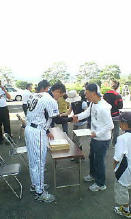 16日(土)、フェニックスリーグが開催されている日向球場で、対日本ハムファイターズ戦の試合前にサイン会を行いました。蕭一傑選手と鄭凱文選手が、サインのプレゼントと力強い握手でご来場いただいたファンの皆様の期待に応えました。