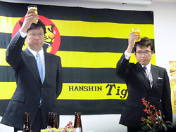 南球団社長は新年のあいさつで「今年も厳しい景気が続きそうですが、そういう閉鎖感が世の中にあるからこそより一層タイガースが頑張って、世間に明るい話題を提供したい」と語りまた、今年の目標として『チームの優勝、日本一と営業の強化』を挙げました。