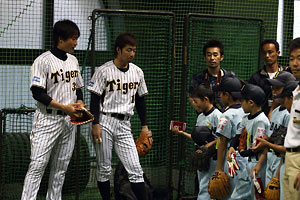 桧山進次郎選手や鳥谷敬選手ら9選手が参加し、東日本大震災で被災した福島県の少年野球チームや西宮市内児童養護施設の子供たちとキャッチボールを楽しみました。
