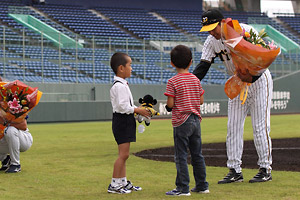 初日は、鶴投手と清原投手による来場者へのサイン会や、試合前には選手らによるスタンドへサインボールの投げ込みが行われました。