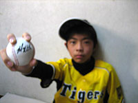 僕は、新井選手が大好きです。小学3年生の僕は、守口市の少年野球チーム『三郷野球部』でサードを守っています。試合中にナイスプレーがで きた時、応援してくれるお母さんたちが『ナイスサード!!三郷の新井!!』と言ってくれます。その瞬間、体が熱くなって、憧れの新井選手になった気分にな ります。毎回の試合で『熱くなれ!!!』るように練習がんばります。