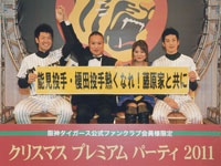 昨年は、3月11日に東日本大震災があり、野球界も大変でしたが、野球からみんなに元気を与えるという力強いメッセージに感動して、私達夫婦も多くの球場へ足を運び、球場への売上やチケットの購入、また、各球場での募金活動に積極的に参加して私たちに少しもできることをやろうと決め、夫婦で 阪神タイガースを応援するとともに各球場へと足を運びました。4月2日~3日に開催されました東日本大震災チャリティ試合に参加したのをスタートとして、 横浜に在住の私たちは、関東で開催される阪神タイガースの試合・交流戦に全て参加しました。当然聖地甲子園にも行き、倉敷のマスカットスタジアム・広島の ZOOM-ZOOMスタジアムにも応援に行き、募金活動も参加してきました。新井選手がプロ野球界のためにあれだけ頑張ったので、私達も一生懸命応援していこうと思いました。当然、公式ファンクラブ応援デーにも合わせて観戦をすることが楽しみとなりました。特に昨年度のピンバッジプレゼントは、また参加したくなるような企画だったので、思わず完成させてしまいました。家に家宝として飾っています。各地を廻っていろいろなファンクラブの会員の人と触れ合い、一緒に応援をしたり、ジェット風船をあげるなどの一体感は野球を見に来て本当に良かったと思います。また、試合に負けた時も意気消沈してガッカリしますが、2次会場所で他の公式ファンクラブの会員さんと一緒になり、いつの間にか反省会になって盛り上がって、明日は絶対に勝とうと乾杯し、時には六甲おろしを廻りに迷惑にならないように小声で歌ったり、それはそれなりに楽しい一時でした。ドリームリンクデーの開催の時は、極力参加するように心がけていましたが、参加できなくてもPCからもいろいろネットで応援できましたので、公式HPにいろいろ応援メッセージを投稿したりしました。試合も終盤に近づき、東日本大震災 の影響で開催日程が過密スケジュールになり、選手の疲労が溜まる中、関東遠征最後の8連戦では、公式ファンクラブの仲間を誘い、私達も8連戦の応援に参戦 して選手達をレフトスタンドから一生懸命応援致しました。ペナントレースも終わり、今年最後の締めくくりとして毎年参加している公式ファンクラブ主催のク リスマスパーティーにも参加して、2011年度を選手と楽しく一緒に過ごすことができました。私達も選手と同様に本当に心に残る熱くなれた一年でした。