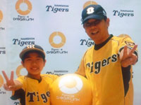 昨年、9月23日対読売戦の試合前に小学5年の息子がスピードガンコンテストに当選し、甲子園のマウンドで息子が投げ私が受けるというイベ ントに参加することが出来ました。試合前にスタッフから説明を聞いていましたがベンチ横の通路に待機中にOBの解説者達を間近で見ることが出来、息子よりも私の方が興奮していました。いざ、イベントの為にグラウンドに出ると既に3万人近くは入っていたのではないでしょうか?3人参加の中で息子は2番目。アナウンスで紹介され私はキャッチャーボックス、息子はマウンドへ。キャッチャーの位置から見る風景は素晴らしく、整備されたグラウンドもしっかり踏み込めて、且つ柔らかい印象でした。息子が初球を75キロのストレートでストライクを投げた瞬間、どよめきと歓声があがり体全体が熱くなりました。2球目は少し外れましたが75キロを投げ最高のシチュエーションで最高の体験を親子で出来たことが去年の中で1番、熱くなれたことですね。