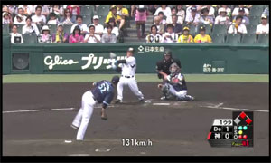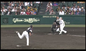 好投手・三浦から平野自身甲子園初となるホームランをライトスタンドへ放つ!