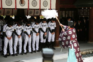 14日(金)、和田豊監督はじめ、選手・スタッフ・職員が、先日の西宮神社に続き、廣田神社(兵庫県西宮市)を参拝し、今シーズンの必勝祈願を行いました。