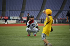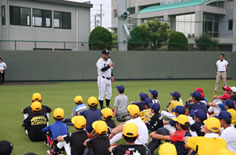KIDS会員150名(初歩コース50名・投手コース25名・捕手コース25名・内野手コース25名・外野手コース25名)を事前募集。当日は前日の雨天によるグラウンド不良のため中止の予定でしたが、監督・選手の好意で芝生エリアによるキャッチボールを15分ほど行い、その後握手会を実施しました。