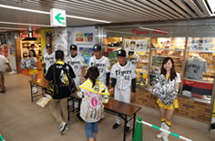 阪神甲子園球場で開催されたウエスタン・リーグ公式戦で、球場コンコース8号門タイガースショップ前に開門後10~15分の間、若手選手によるファンのお出迎え及び来場者プレゼントを行いました。