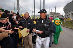 選手が練習の合間や球場からの帰りに、自主的にサイン会を行いました。