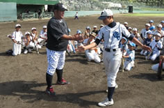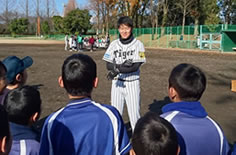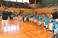 ムで約130名の小学生球児に対し、野球教室を開きました。