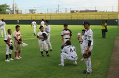 広島と行われたウエスタン・リーグ公式戦後に地元の子供たち約60名を対象に、掛布ファーム監督、コーチ、選手全員による野球教室を行いました。