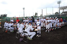 2月7日(日)春季キャンプ地・安芸において、練習後の安芸球場で、安芸市や室戸市などの少年野球9チー