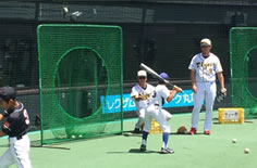 読売ジャイアンツと行われたウエスタン・リーグ交流戦後に地元の子供たち約143名を対象に、矢野ファーム監督、コーチ、選手全員による野球教室を行いました。