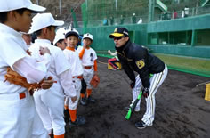 2月4日(日)、春季キャンプ地・安芸において、練習後の安芸球場で、県内から7チーム約80人の小学生球児を対象に野球教室を行いました。
