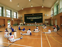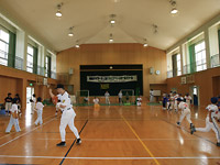 - 雨が降ったので体育館での実施となりました。