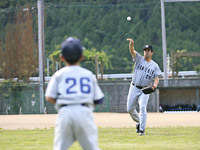 グレーのユニフォームが泉台小学校少年野球部、白いユニフォームが鳴尾東ビクターズです。